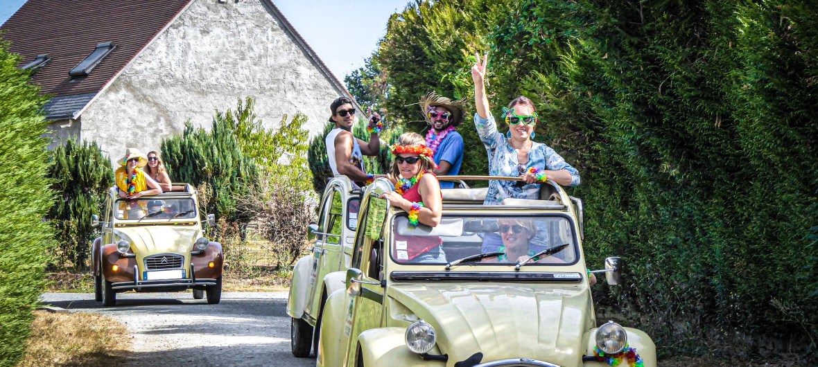 Passionnés de 2CV & de Méhari depuis l’enfance, nous avons décidé de lancer notre projet autour de cette passion. Notre objectif est de vous faire découvrir les lieux chargés d’histoires de la région Centre Val de Loire. Basé en Touraine plus précisément, nous organisons des événements de toutes sortes (anniversaires, enterrement de vie de garçon/jeune fille, team-building, séminaires, cousinages, mariages, etc). Convivialité, bonne humeur et esprit d’équipe sont les maîtres mots. A bord de votre Citroen Méhari, partez à l’aventure de la culture Tourangelle.